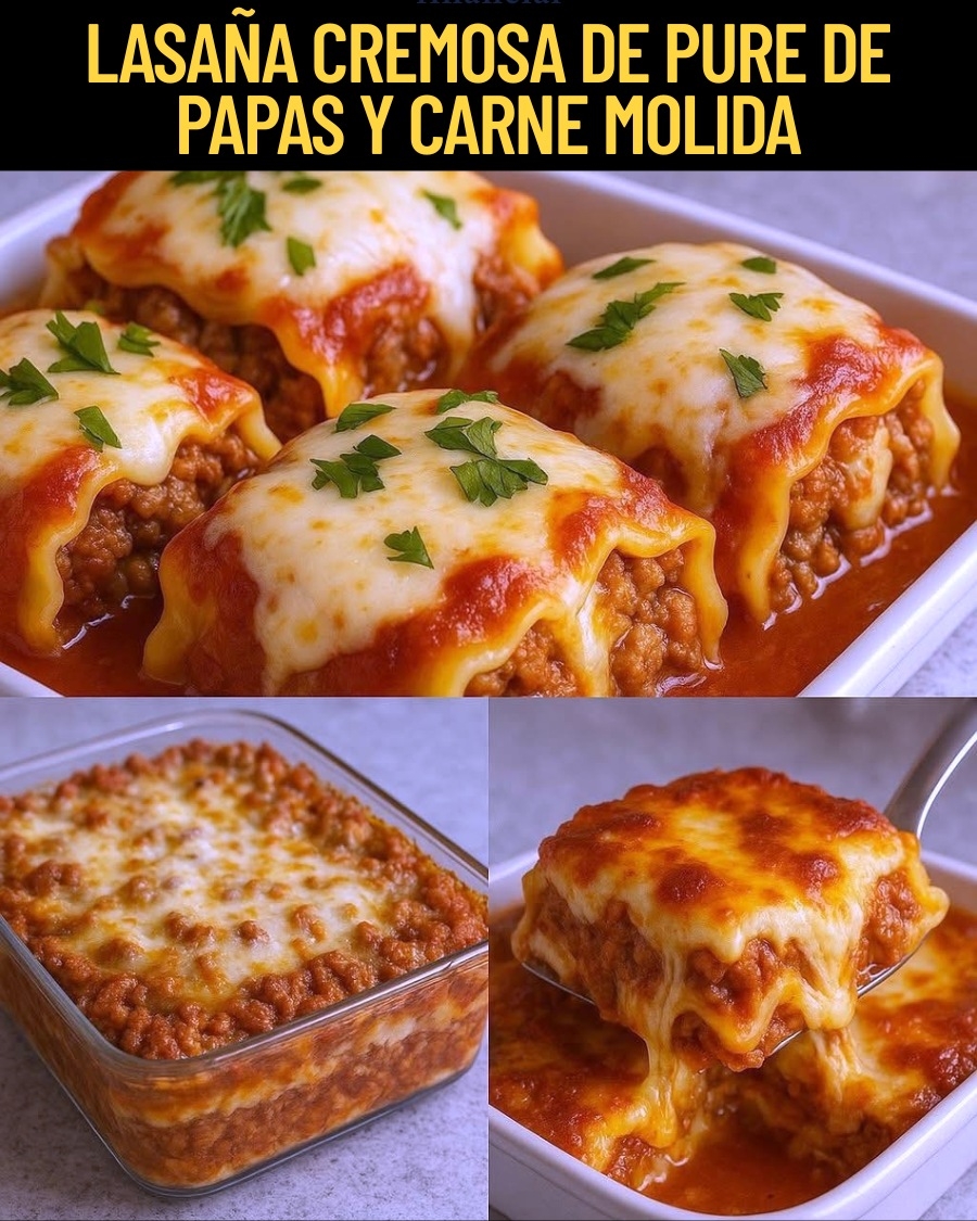 Lasaña cremosa con puré y carne molida 😋 ¡Un plato casero con sabor irresistible!