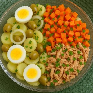 nsalata di patate con uova, chayote e carote